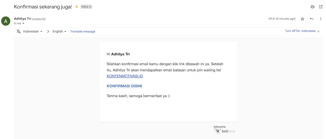 Silahkan cek email Anda. Seharusnya Anda mendapatkan email seperti ini